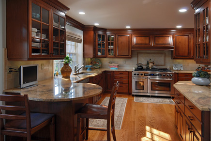The kitchen is the heart and soul of your home. An updated kitchen with new cabinets and appliances, more light and greater counter space increases the value of your home in addition to giving you a more beautiful, stylish and functional space. Over several decades, MGD Design/Build has designed and built hundreds of spacious, new kitchens – from large, gleaming spaces for serious home cooks, to cozy, comfortable family oriented spaces to everything in between. We can show you the latest products and materials in kitchen makeovers and deliver a creative design solution to deliver a stunning new look to the heart of your home.